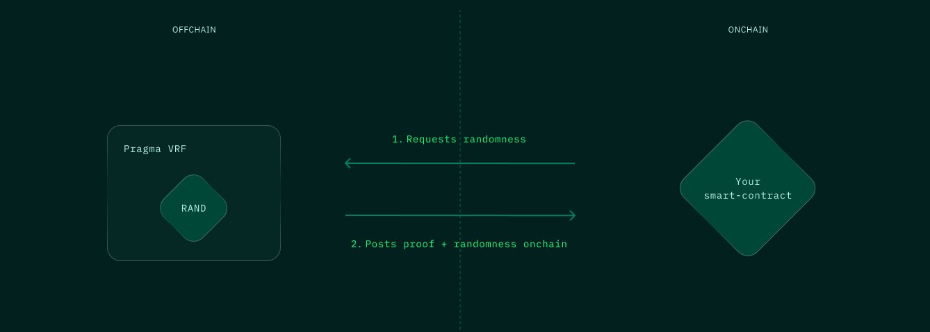 When a smart contract needs random numbers, it sends a private seed to Pragma. This seed ensures that the resulting randomness can't be manipulated by Pragma since they don't know the private key needed to calculate it. At the same time, the smart contract and others can't predict the outcome because they don't have access to this private key.