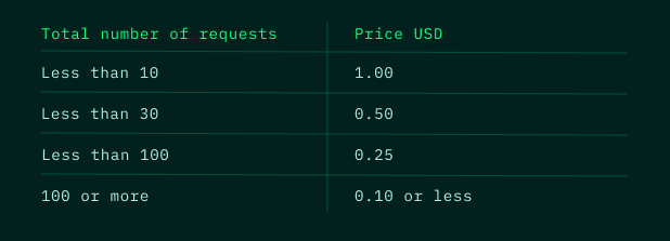 This table outlines the costs associated with different volumes of randomness requests.